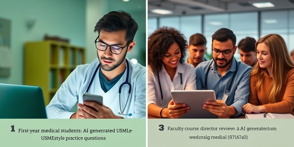 Conducted at the University of Cincinnati College of Medicine between November and December 2023, this pilot study aimed to develop an AI-driven system for generating USMLE-style practice questions. The system utilized a Large Language Model (LLM) enhanced with retrieval augmented generation (RAG) and was validated through a human-in-the-loop process led by a faculty course director.